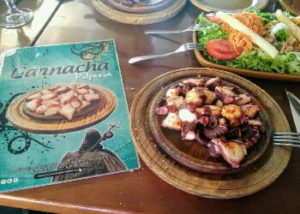 Pulpo en Melide (Pulpería Ezequiel, Pulpería A Garnacha y Pulpería Taboada)